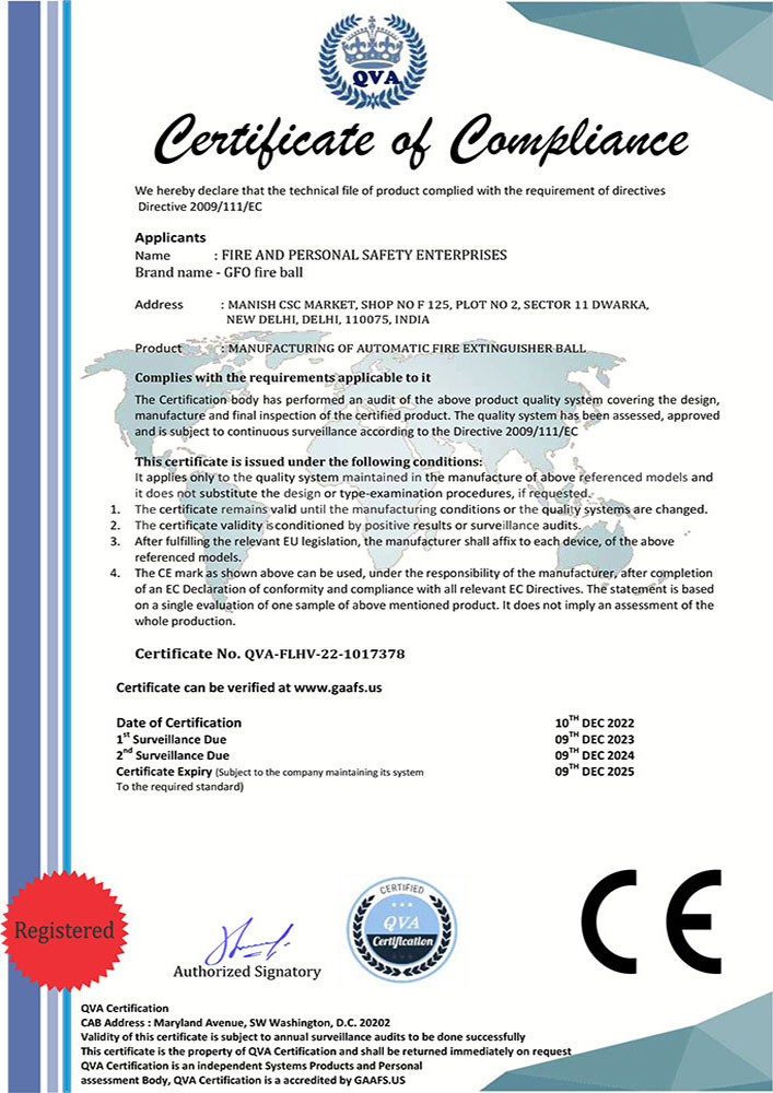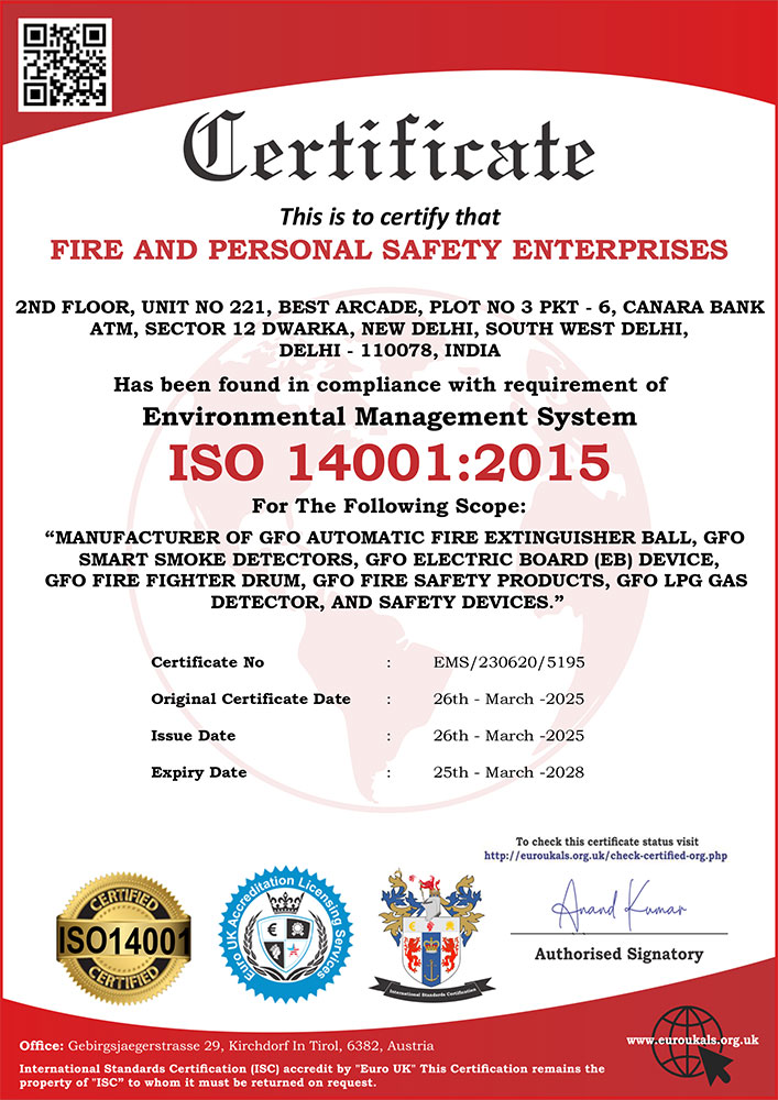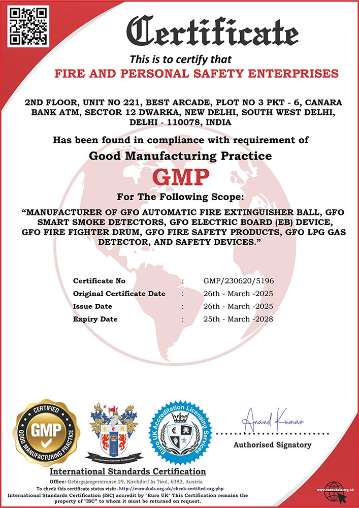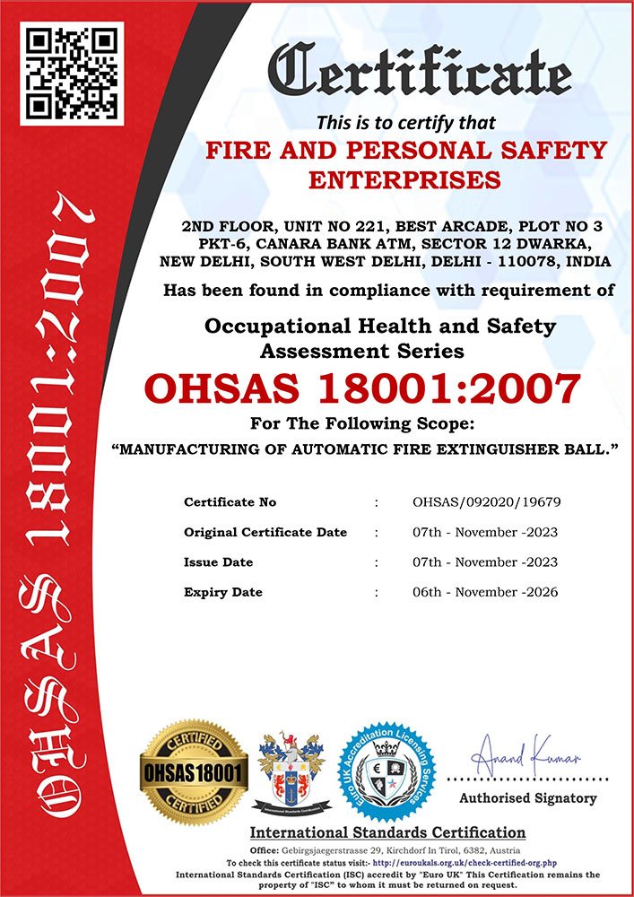 Established in 2019, Fire and Personal Safety Enterprises has swiftly emerged as a market leader in the Fire safety products. With an determined dedication to manufacturing high-quality fire extinguisher balls and providing top-notch fire safety products services, we have established ourselves as a trusted name in the industry. Our products, proudly made in India, are certified to comply with the rigorous standards of the ISO 9001-2015 quality system, ensuring reliability and effectiveness. Additionally, we hold a multitude of relevant certifications, including CE, UDYAM, ISO 14001, GMP, OHSAS, NSIC, NTH, UL, and NABL lab reports, underscoring our commitment to excellence.